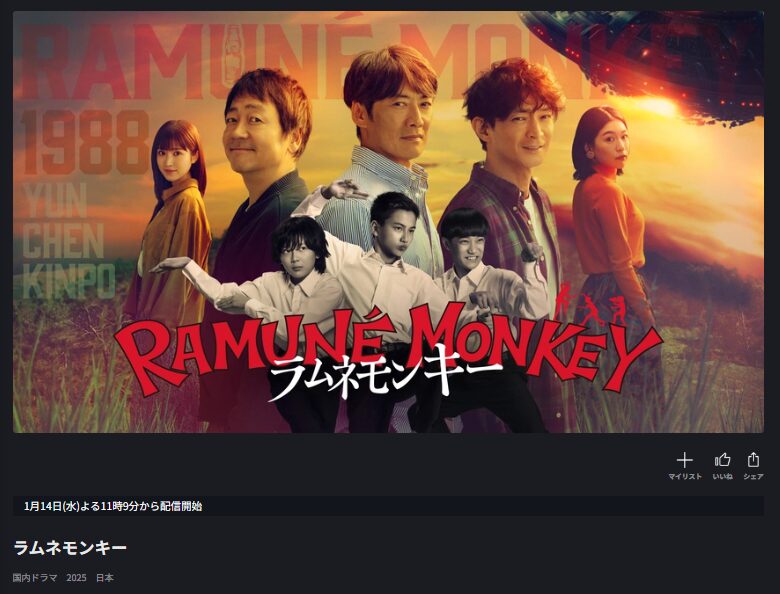 2026年1月14日(水)から放送スタートのドラマ「ラムネモンキー」の動画を見逃し配信で視聴できる配信サイトを紹介します。