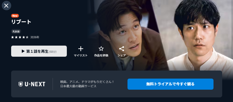 全話見放題で視聴したい方は、『U-NEXT』に登録することで、ドラマ「リブート」をフルで視聴可能です。