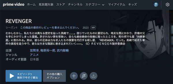 人気の動画配信サイトAmazonプライムでも、アニメ「REVENGER」を視聴できるか調査しました。