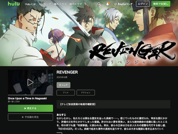 Huluでアニメ「REVENGER」の動画を全話視聴