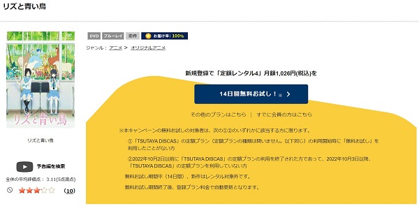 そして、映画「リズと青い鳥」はツタヤディスカスで配信しているので、無料でDVDレンタルが可能です。