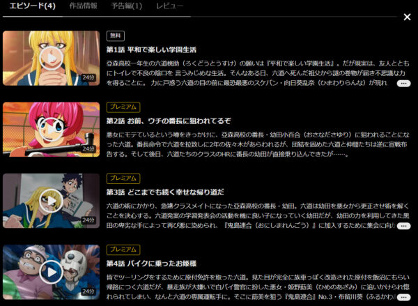 また、30日間の無料期間があるので、余裕を持って「六道の悪女たち」のアニメを全話視聴ができます。