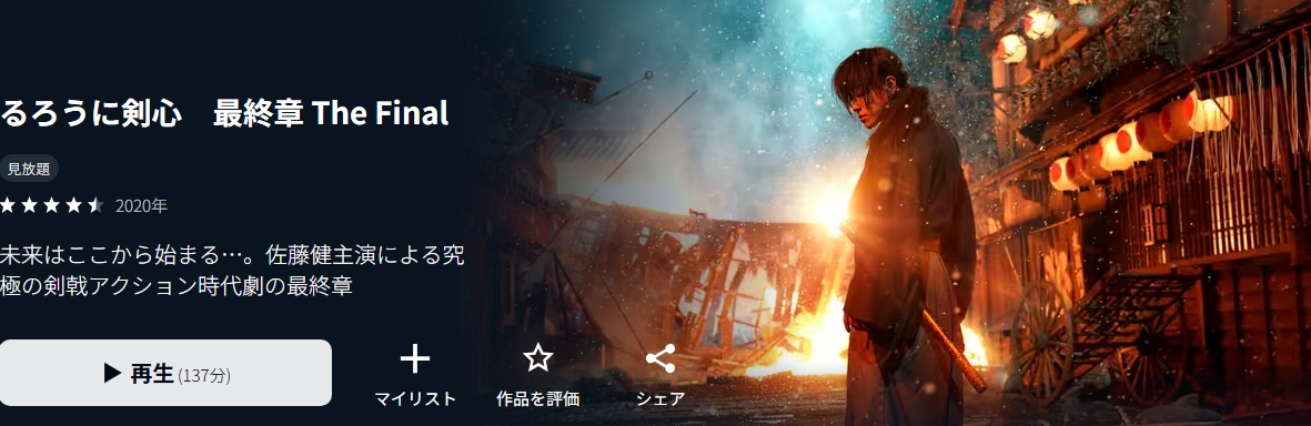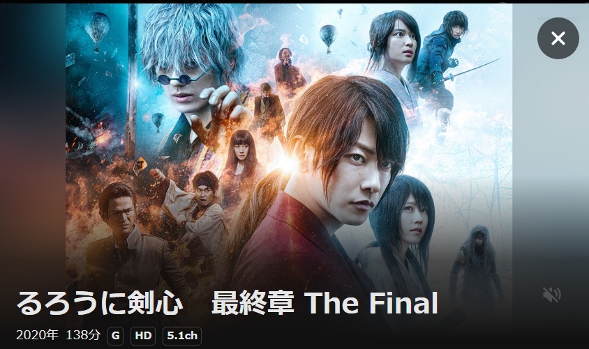 - 映画「るろうに剣心 最終章 The Final」がフルで視聴可能。