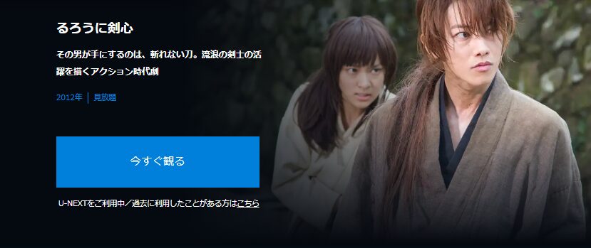 U-NEXTでは映画「るろうに剣心」を見放題にて配信されています!
