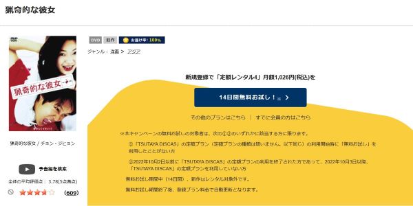 TSUTAYA DISCASで映画「猟奇的な彼女」をDVDレンタルで無料視聴
