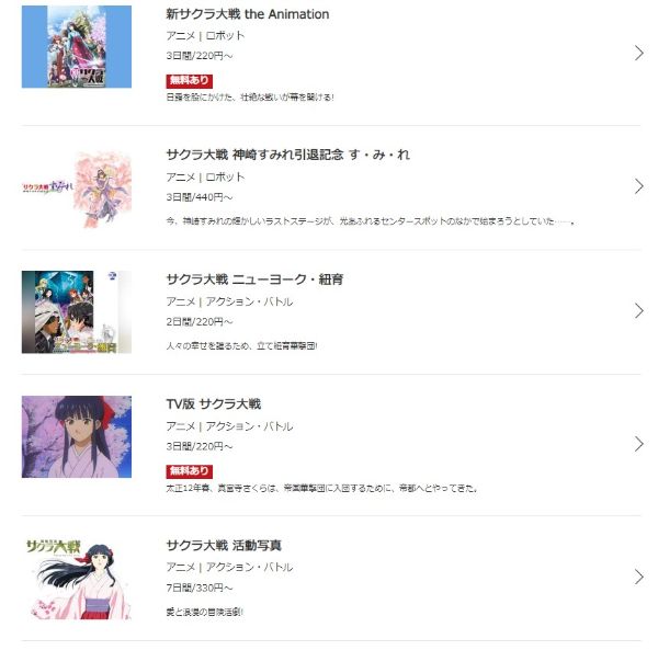 - 「サクラ大戦」の関連動画も無料で視聴できる。