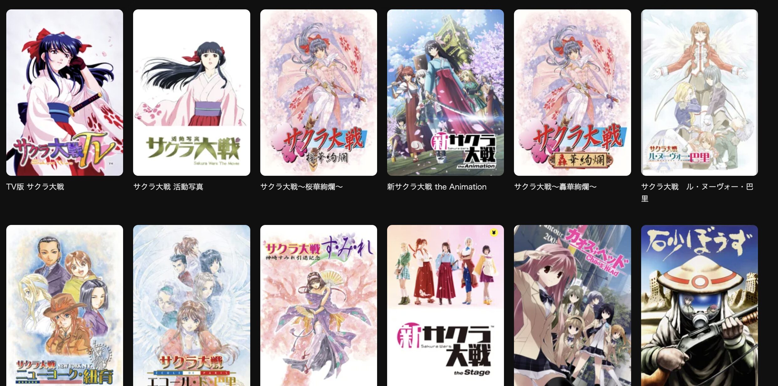 アニメ「サクラ大戦」は以下のシリーズ作品を配信しています。