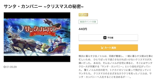 映画「サンタ・カンパニー ~クリスマスの秘密~」は330円でレンタル配信してるので、フルで視聴できます。