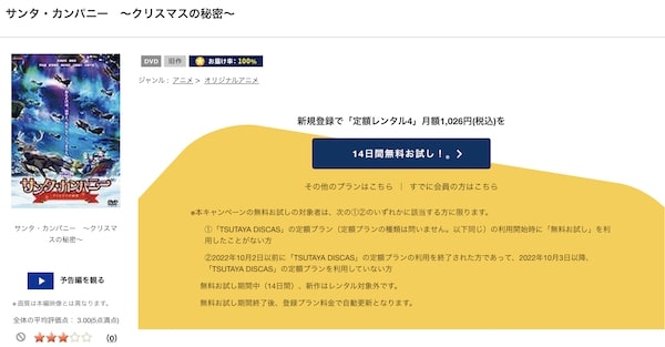 そして、映画「サンタ・カンパニー ~クリスマスの秘密~」はツタヤディスカスで配信しているので、無料でDVDレンタルが可能です。