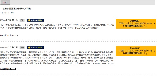 しかし、Amazonプライムはアニメ「さらい屋 五葉」の動画は視聴できませんが、関連動画やシリーズ作品の中には見放題で配信されているものがあります。