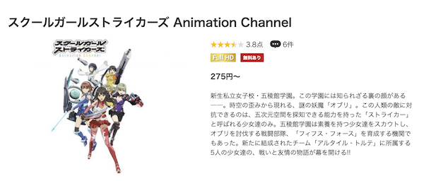ただ、アニメ「スクールガールストライカーズ Animation Channel」の関連作品やシリーズ作品は配信しているので、有料となってしまいますが見放題で視聴は可能です。