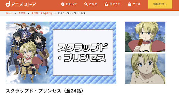 またdアニメストアは、アニメ「スクラップド・プリンセス」のシリーズや関連動画を全話視聴できます。