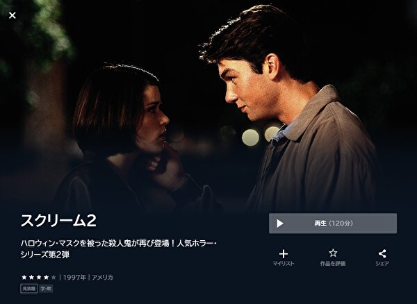 U-NEXTで映画「スクリーム2」の動画を無料トライアルでフル視聴