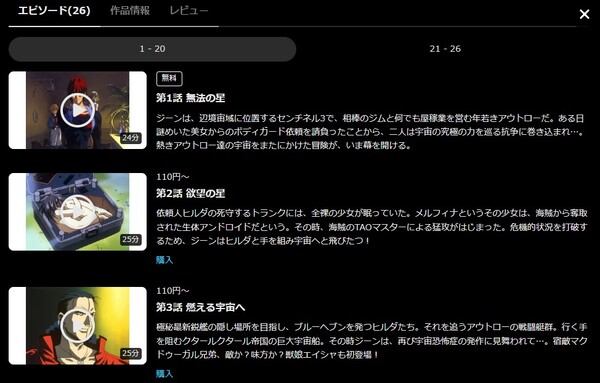 TSUTAYA DISCASでアニメ「星方武侠アウトロースター」の動画を全話無料視聴