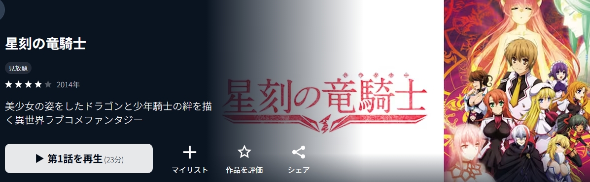 2026年3月現在、DMM TVではアニメ「星刻の竜騎士」が配信中です。
