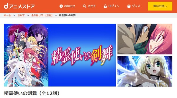 またdアニメストアは、アニメ「精霊使いの剣舞」のシリーズや関連動画を全話視聴できます。