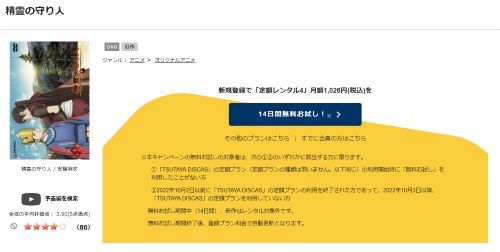 TSUTAYA DISCASは、準新作は8枚まで、話題作・旧作は枚数制限なしでお試し期間中に無料レンタルができ「精霊の守り人」のアニメは、旧作なので無料視聴可能です。