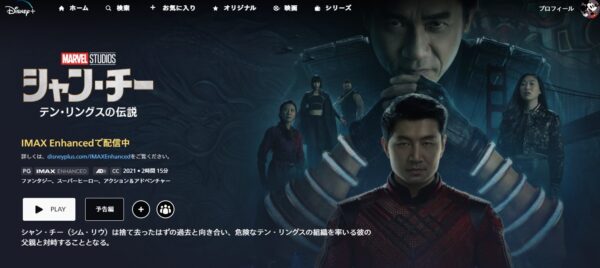 ただ、映画「シャン・チー/テン・リングスの伝説」の動画は視聴できないので、シャン・チー/テン・リングスの伝説を見たい場合はディズニープラスをお試しください。