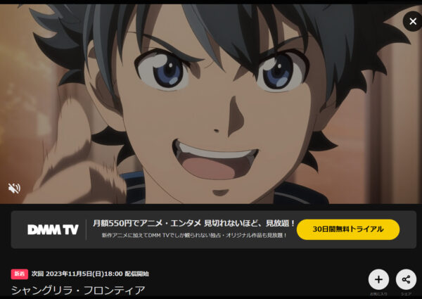DMMTVでアニメ「シャングリラ・フロンティア」の動画を全話無料視聴
