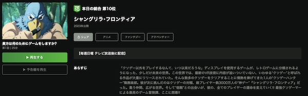 U-NEXTでアニメ「シャングリラ・フロンティア」の動画を無料トライアルで全話視聴!