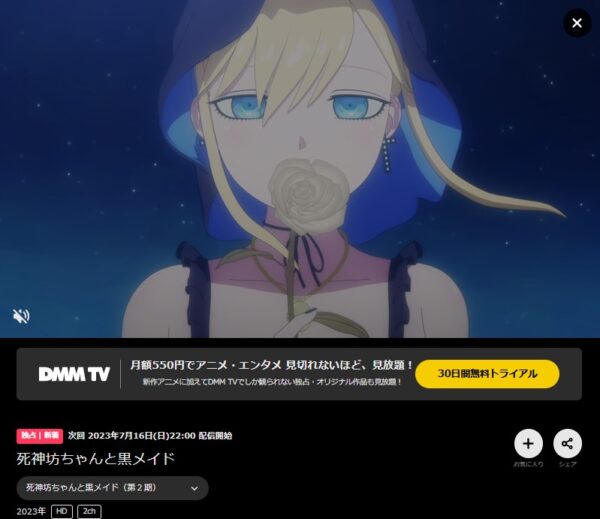 すぐにアニメ「死神坊ちゃんと黒メイド 2期」を全話無料視聴したい場合は、DMMTVですぐに視聴ができますので、こちらもチェックしてみてくださいね。