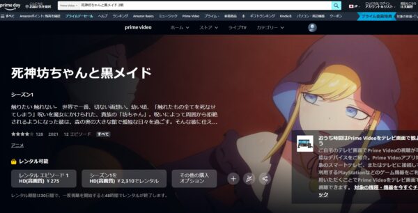 Amazonプライムはアニメ「死神坊ちゃんと黒メイド 2期」は無料で視聴できませんが、関連動画やシリーズ作品には見放題で配信されているものもあります。