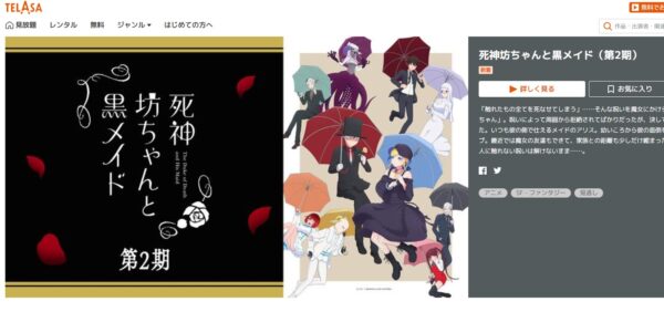 さらに、TELASAは、「死神坊ちゃんと黒メイド 2期」の関連動画も配信しており無料視聴できます。