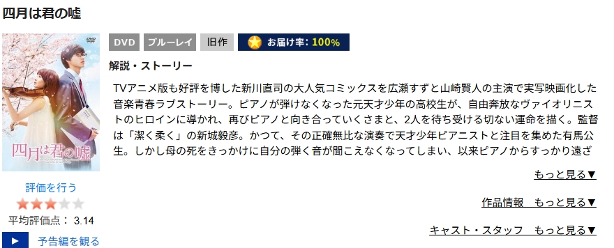 TSUTAYA DISCASで映画「四月は君の嘘」をDVDレンタルしてフル視聴