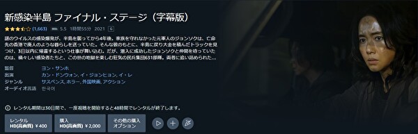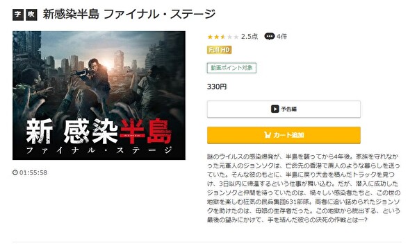 映画「新感染半島 ファイナル・ステージ」は330円でレンタル配信してるので、フルで視聴できます。