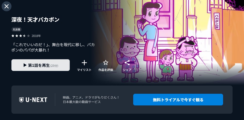 - 「深夜!天才バカボン」が全話見放題で視聴可能。