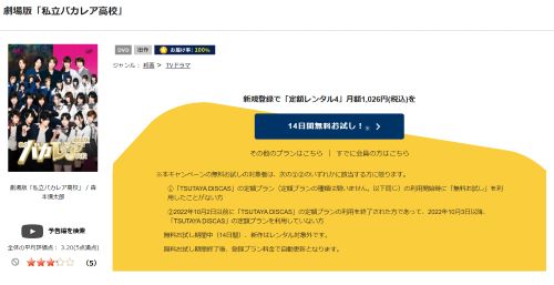 そして、映画「私立バカレア高校」はツタヤディスカスで配信しているので、無料でDVDレンタルが可能です。