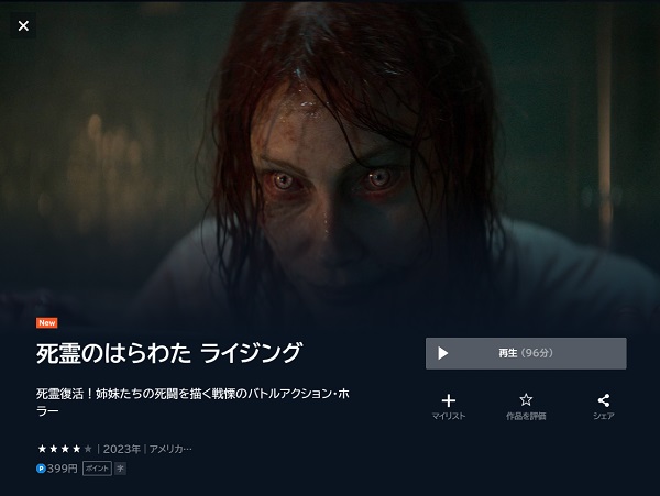 映画「死霊のはらわた ライジング」をU-NEXTで視聴するのに399円のレンタル料金がかかります。