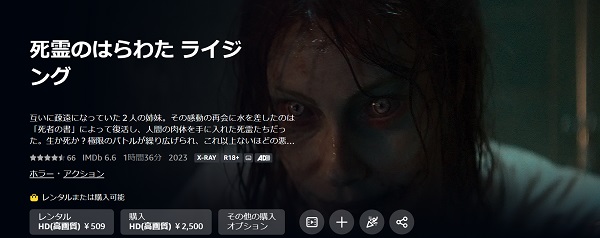 しかし、映画「死霊のはらわた ライジング」はレンタル作品のため、509円かかってしまい無料視聴することができません。