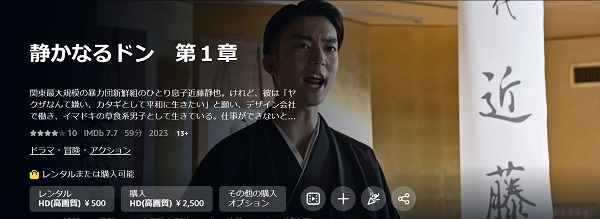 映画「静かなるドン 第1章(2023)」は550円でレンタル配信してるので、フルで視聴できます。