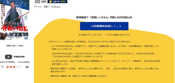 そして、映画「修羅の伝説」はツタヤディスカスで配信しているので、無料でDVDレンタルが可能です。