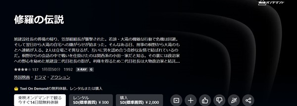 しかし、映画「修羅の伝説」はレンタル作品のため、300円かかってしまい無料視聴することができません。