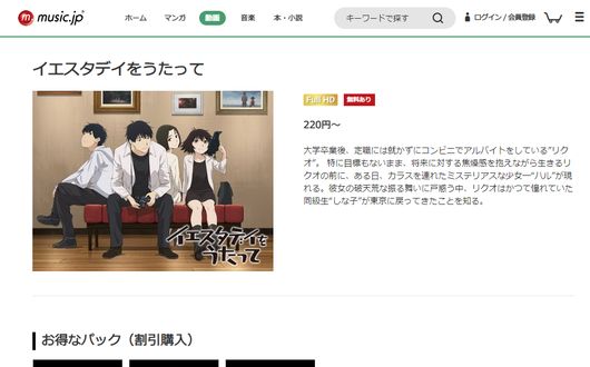 TSUTAYA DISCASでアニメ「イエスタデイをうたって」の動画を全話無料視聴