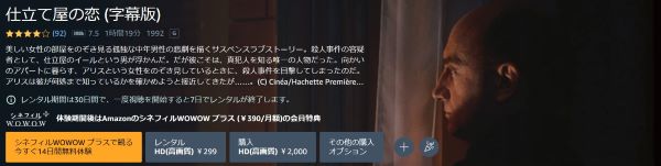 しかし、映画「仕立て屋の恋」はレンタル作品のため、299円かかってしまい無料視聴することができません。