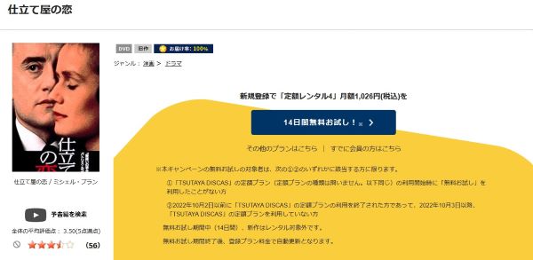 そして、映画「仕立て屋の恋」はツタヤディスカスで配信しているので、無料でDVDレンタルが可能です。