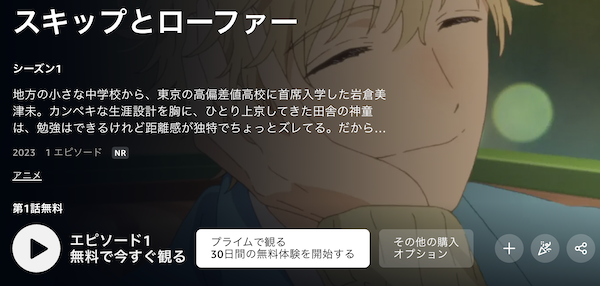 Amazonプライムでアニメ「スキップとローファー」の動画を全話無料視聴