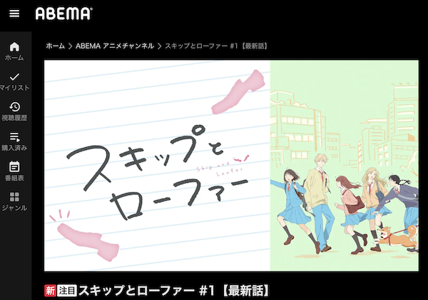 また、ABEMAは独自のオリジナル動画やコンテンツがあり、アニメ「スキップとローファー」以外も視聴できます。