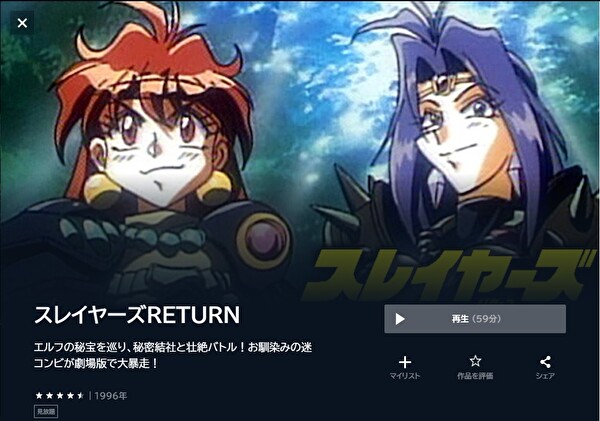 - 映画「スレイヤーズRETURN」がフルで配信中。
