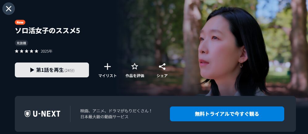 「ソロ活女子のススメ5」は、U-NEXTで配信しており見放題なので無料トライアル中に全話視聴ができます。