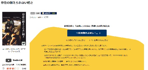 『TSUTAYA DISCAS』は14日間のお試し期間が初回特典で利用できるので「存在の耐えられない軽さ」の動画をフルで無料視聴できますよ。