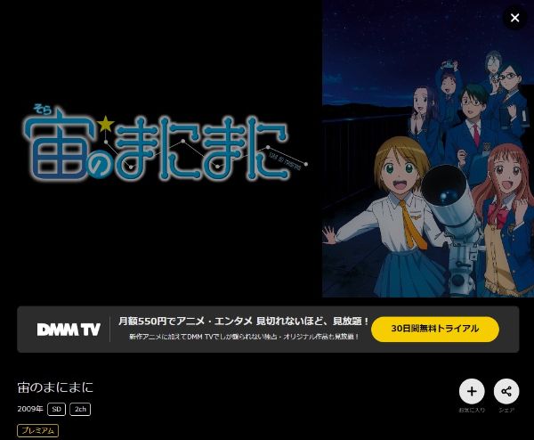 DMMTVでアニメ「宙のまにまに」の動画を全話無料視聴