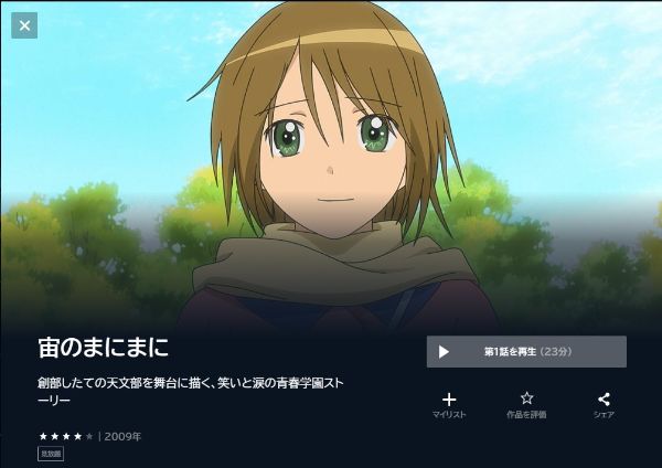U-NEXTでアニメ「宙のまにまに」の動画を全話視聴