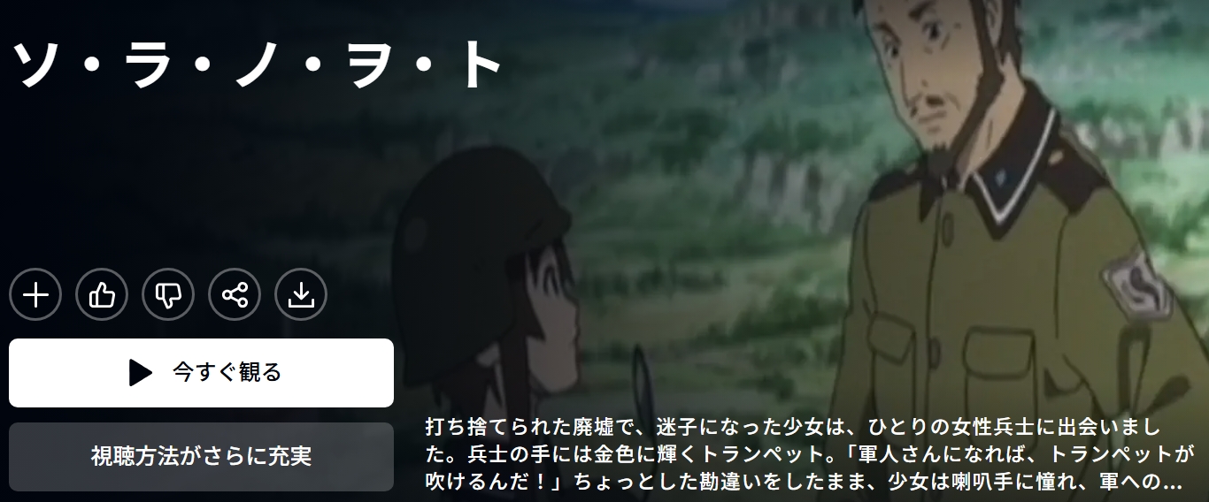 2026年3月現在、30日間の無料トライアルに登録すれば、アニメ「ソ・ラ・ノ・ヲ・ト」を追加料金なしで全話視聴できます。
