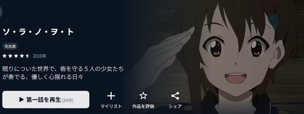 - アニメ「ソ・ラ・ノ・ヲ・ト」が全話視聴可能。