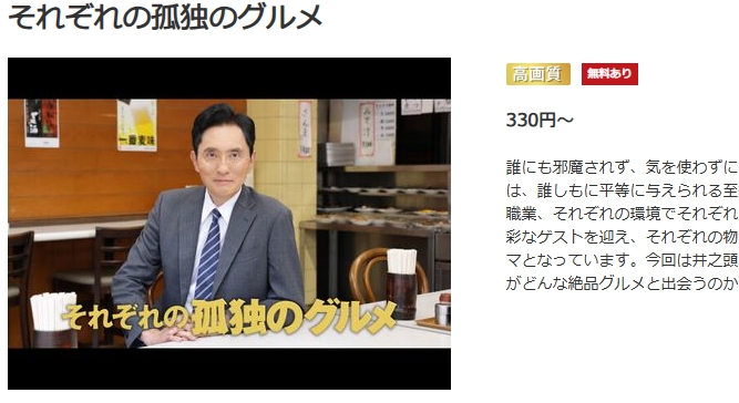 2026年3月現在、DMM TVではドラマ「それぞれの孤独のグルメ」全話の動画が配信されており、各話330円で購入できます。