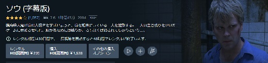 人気の動画配信サービスのAmazonプライムビデオで映画「ソウ」の映画がフルで視聴できるか調査しました。